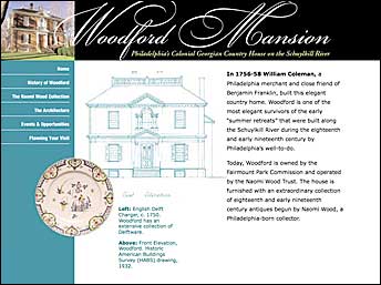 Project: Woodford Mansion Website Client: Woodford Mansion and Keith Ragone Description: Website of a Colonial Georgian country house on the Schuylkill River. Features online galleries of architectural details and eighteenth and early nineteenth century antiques. |